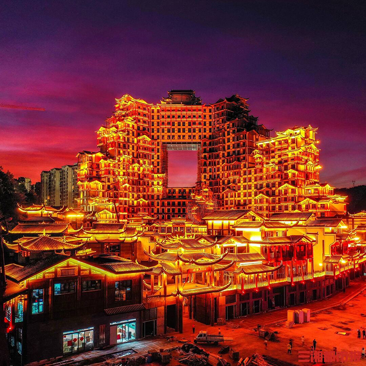 它將獨(dú)特的土家族建筑奇觀與現(xiàn)代光影科技(如全息投影、互動(dòng)燈光秀)完美結(jié)合,打造出極具沉浸感的夜間文化體驗(yàn)場(chǎng)景,并通過引入豐富的地方非遺展示、特色美食集市與沉浸式演藝活動(dòng),成功激活區(qū)域夜游經(jīng)濟(jì),為游客提供了傳統(tǒng)與現(xiàn)代交織的全新文旅樣本,引領(lǐng)了沉浸式文化夜游的新風(fēng)潮。