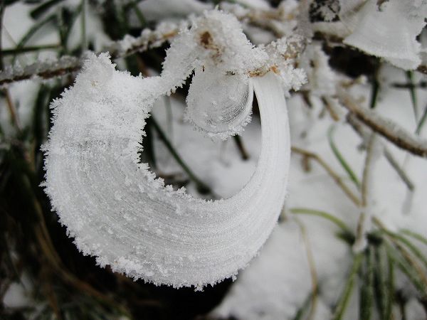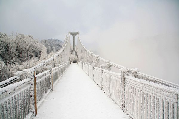 這簡(jiǎn)直是童話世界!一個(gè)晶瑩剔透的琉璃國(guó)?。。〔还獍硾](méi)見(jiàn)過(guò),俺那東北的兄弟也沒(méi)見(jiàn)過(guò)。所有走出來(lái)的人都是先張大嘴巴哦然后再翹起來(lái)哇。沒(méi)錯(cuò),沒(méi)有人會(huì)料到可以看到這番景致。一切都是驚人的白色。所有的植被都被套上冰雪鎧甲,摸上去是一層霜包裹著一層冰,在氤氳彌漫中透露出不同的姿態(tài)。濃濃的白霧把遠(yuǎn)處的山和近處的懸崖全都隱蔽起來(lái),像是漂浮的云端之城。俺當(dāng)時(shí)想到的就是這倆俗字:仙境。著名歌手李娜同志的別墅就在索道大廳門(mén)口,當(dāng)然現(xiàn)在已經(jīng)人去樓空。那是肯定的,在這出家必然是不得安寧了。