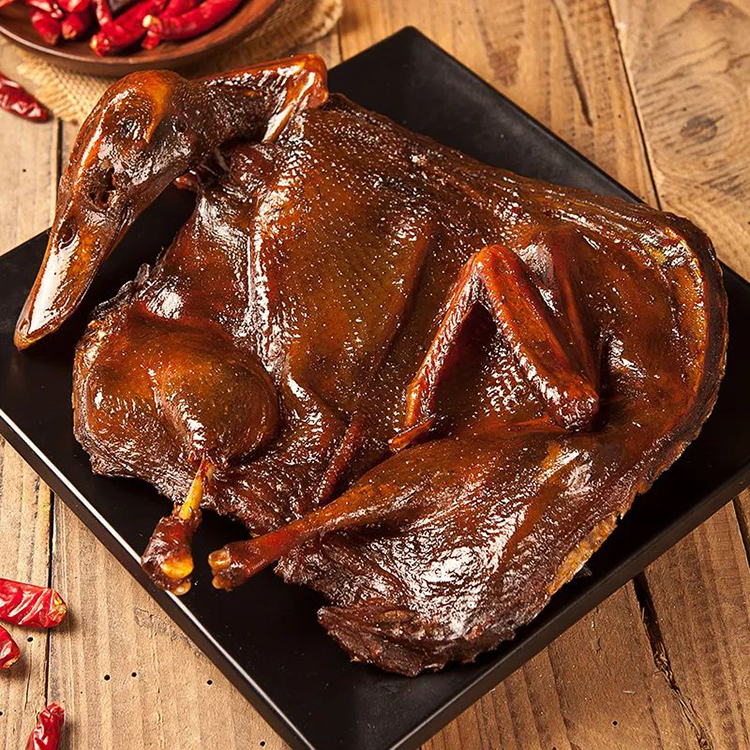 “常德醬板鴨”選用洞庭湖區(qū)蛋鴨為材料、經(jīng)三十多種名貴中藥浸泡,10余種香料、經(jīng)過風干、烤制等15道工序精致而成,成品色澤深紅,皮肉酥香,醬香濃郁,滋味悠長,具有活血、順氣、健脾、養(yǎng)胃、美容之功效,是近期風靡大江南北的一種風味美食,是一道佐酒佳肴、送禮佳品。產(chǎn)品香、辣、甘、麻、咸、酥、綿適中,其中以辣稱奇,具有醇香可口,色香俱全,低脂不膩,回味無窮,食用方便的特點。