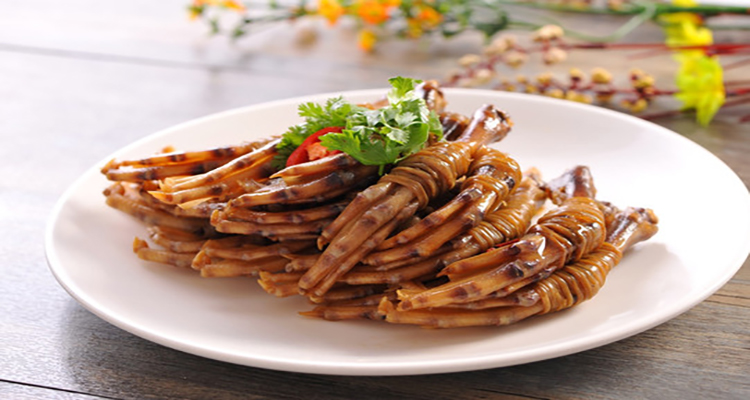 邵陽鴨腳包是邵陽長陽鋪的特色美食之一, 也是湖南地方極負盛名的特色菜,這道菜采用秘籍配方,以農家散養(yǎng)土鴨的鴨腳、鴨腸、鴨胗、鴨肝、熟肉為主料,由新鮮鴨腸纏繞在鴨掌上,并且中間裹著一個鴨心或鴨胗等組合,再進行烘烤而成,這道菜在當?shù)胤浅J軞g迎,享有“嶺南荔枝王,邵州鴨腳包"之美譽。