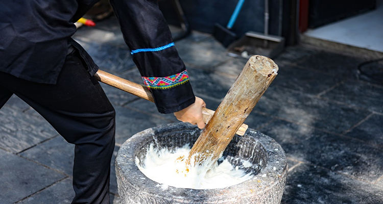 打糍粑:農(nóng)家過年時,會用糯米蒸熟后捶打成糍粑,象征團圓美滿,常蘸糖或包餡食用。