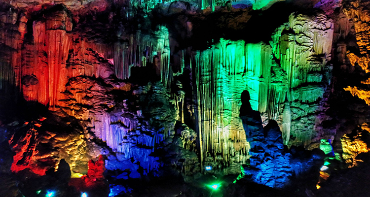 一個(gè)巨大的喀斯特溶洞,位于湖心島上。洞內(nèi)空間開(kāi)闊,鐘乳石形態(tài)各異,在五彩燈光的映襯下,呈現(xiàn)出光怪陸離的景象,仿佛進(jìn)入了一個(gè)神秘的地下世界。洞內(nèi)還有地下河,河水清澈見(jiàn)底。需乘船抵達(dá)島上,游覽時(shí)間約 1 小時(shí),參觀時(shí)需跟隨導(dǎo)游,注意安全。
