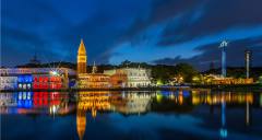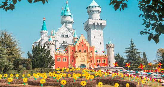 愛(ài)情谷,這里可以看到瑞士大鐘塔和歐洲小鎮(zhèn),處處都是典型的歐式建筑。右邊的丹麥國(guó)王加冕城堡,是個(gè)明星夢(mèng)工廠和恐怖城。與它相鄰的那座綠頂紅墻的建筑是荷蘭海牙國(guó)際法院,內(nèi)部是一個(gè)世界蝴蝶博覽館,在那里可以免費(fèi)欣賞到各種精美的蝴蝶標(biāo)本。左邊的湖水叫天鵝湖,取名于俄國(guó)作曲家柴可夫斯基的同名舞劇《天鵝湖》,湖邊那三座高大的風(fēng)車是荷蘭的象征。右邊地上的泉眼是旱噴泉,在旱噴泉上方的建筑是意大利圣三山教堂,它與原型比例是1:1.5,每年都有許多對(duì)新人在這里舉行西式婚禮。這里還有一個(gè)歐洲小鎮(zhèn)仿建的是德國(guó)和法國(guó)民居,比例為1:1的歐式風(fēng)格,被開放成商場(chǎng)和服裝出租點(diǎn)。