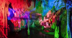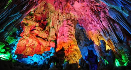 洞內(nèi)寬大幽深,洞中有洞,樓上藏樓,鐘乳石千姿百態(tài)、三步一景、五步一閣,萬(wàn)千景象,令人嘆為觀止,有南宮、北宮、瑤池仙境、海底世界等四大景區(qū)、10多個(gè)廳堂,100多個(gè)景點(diǎn)。