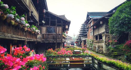 廻龍橋、牙上鼓樓、龍脈廣場(chǎng)、1.6公里長(zhǎng)的古驛道、龍門、長(zhǎng)壽井、薩歲壇。網(wǎng)紅打卡點(diǎn)有“景觀石”、“花街古道”、侗族婚禮“囍文化”拍攝基地。