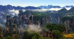 站在袁家界景區(qū)的觀景臺上,三千奇峰盡收眼底,雄險秀野,神態(tài)各異。峽谷深處,千百根石峰石柱奇?zhèn)ネ涣?。峻峭之石,如英武將帥;嵯峨之峰,似勇猛壯士。有聲有色,若靜若動,形象逼真,呼之欲出。